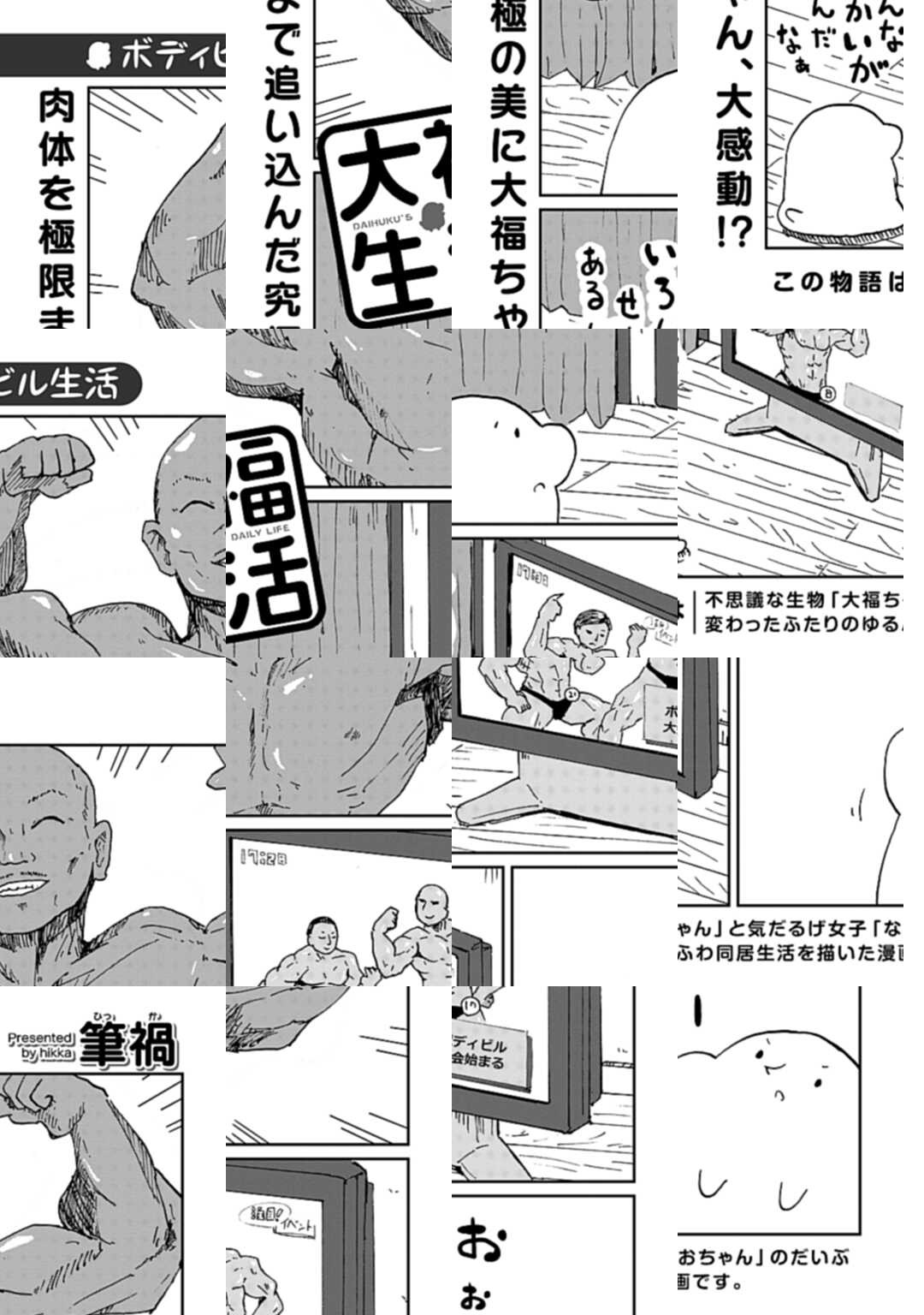 『大福生活』とは、不思議な生き物「大福ちゃん」と気だるげ女子「なおちゃん」が贈る、だいぶ変わったふたりのゆるくて、ていねいな同居生活の物語です。