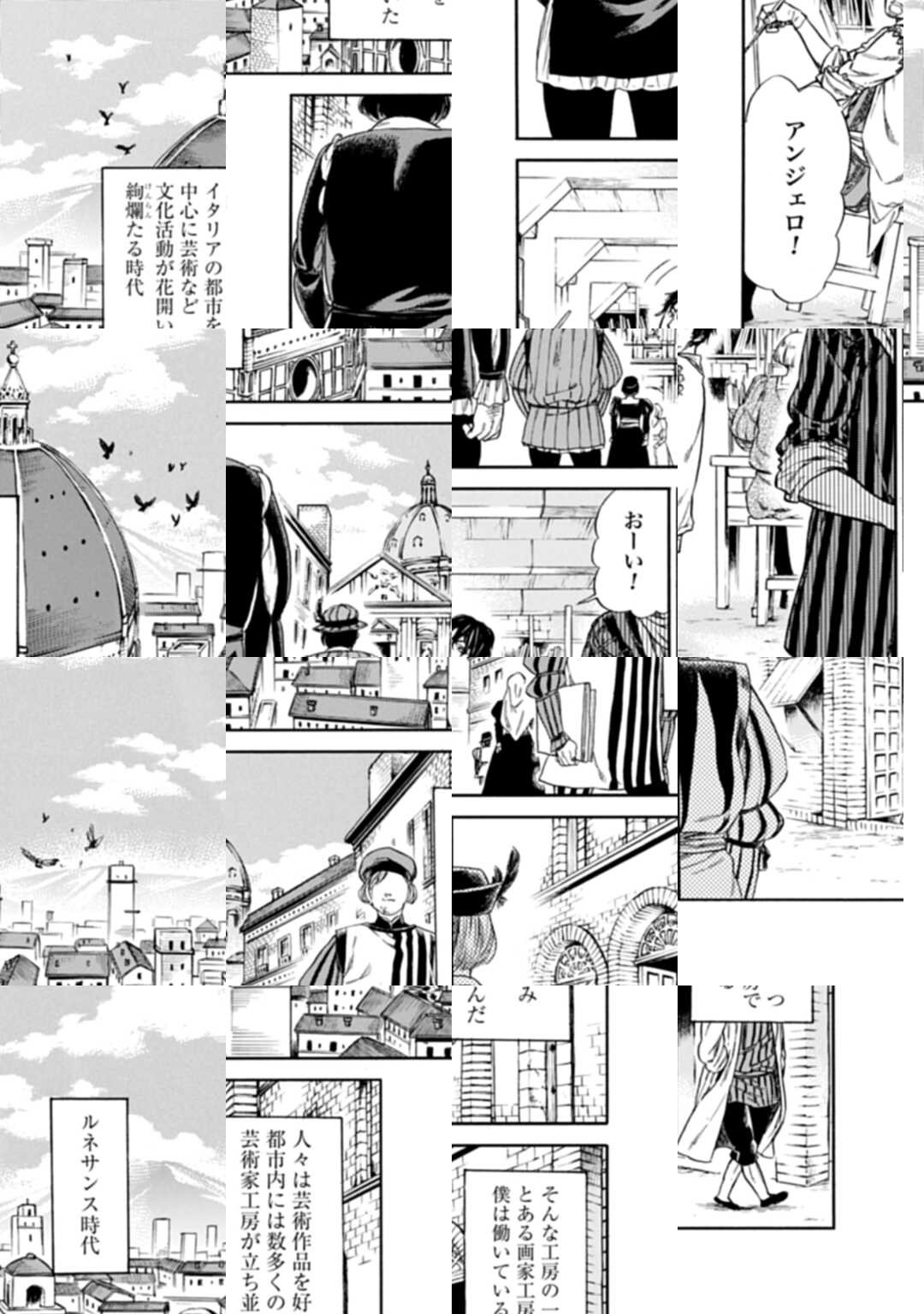 ルネサンス時代、フィレンツェ。とある画家工房で働く少年・アンジェロは、下っ端として忙しなく働き回る日々。そんな彼に初めて出来た後輩――それは、当時としては異色な「女」の職人・ラヴィニアだった。彼女の扱いに戸惑うアンジェロ。色々と気を遣うが、彼女は一度も笑顔を見せてくれず…。