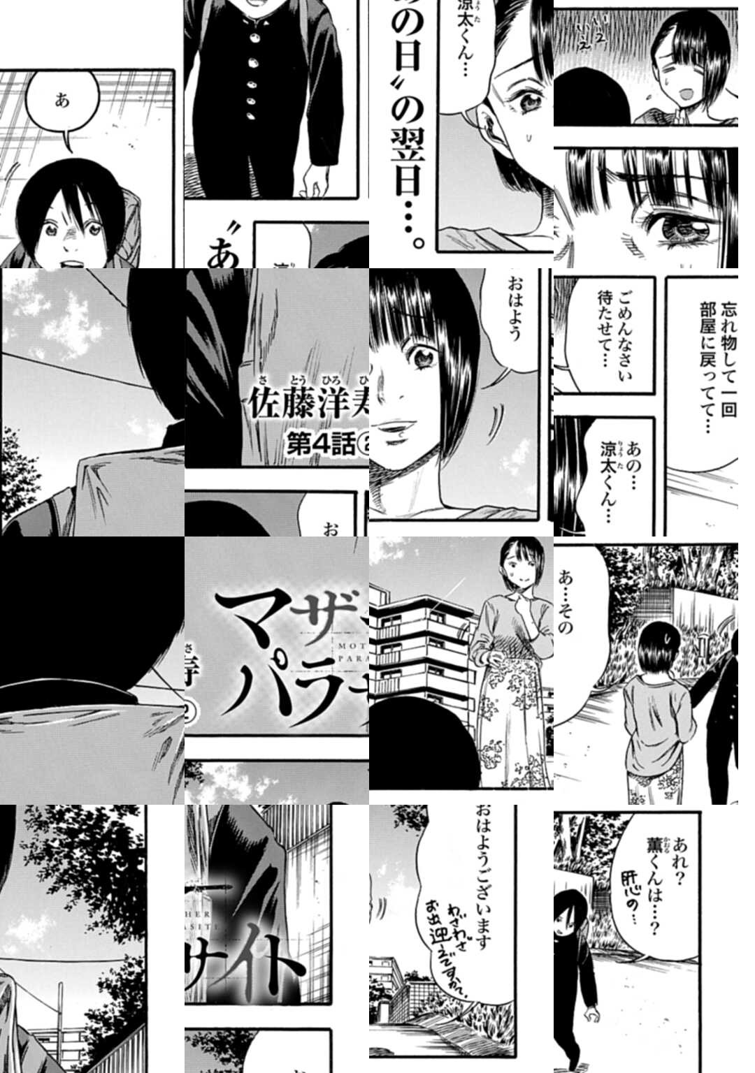 【単行本⑫巻の続きは第52話から!】中学生の三木涼太は、母ひとり子ひとりだが、その仲はむつまじくとても幸せに暮らしていた。だが、家族間の些細なトラブルやミスで怯えるのは母という、親の身分が低いかのような不思議な関係だった。一方、クラスメイトの笠井薫は過保護な親に辟易し、イジメを受ける自分の性格は母親が悪いと考えていた。そんなある日、いつもの薫へのイジメを助けたことがきっかけで、ふたりははじめて会話をするが…!? 究極の母性に取り憑かれた少年のサイコスリラー・サスペンス!