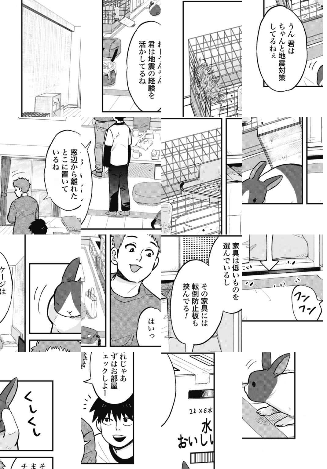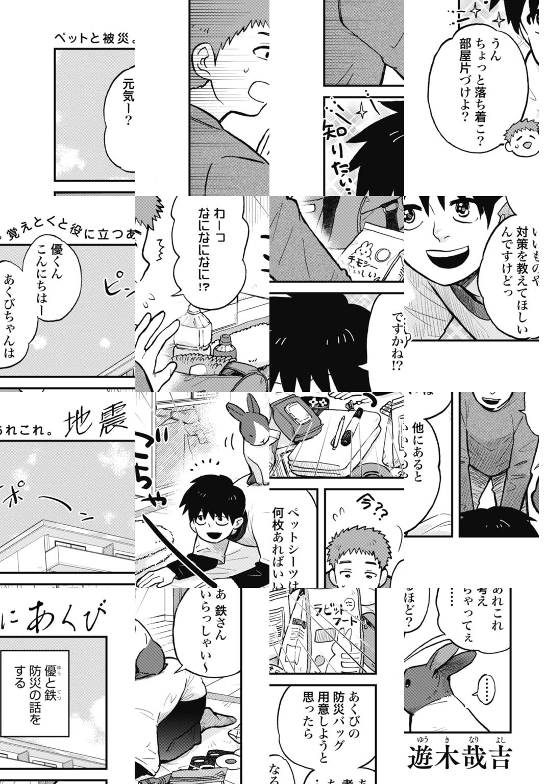 大学に入学しひとり暮らしを始めた栗野優。しかし、ひとり暮らしを始めてすぐ、住んでいる地域が震災に見舞われてしまう。知らない土地での被災。そんな大変な時に優は一匹の“うさぎ”と出会い一緒に避難をすることになるのだが…。SNSで話題となった「愛くるしい骨」の作者による最新読切。