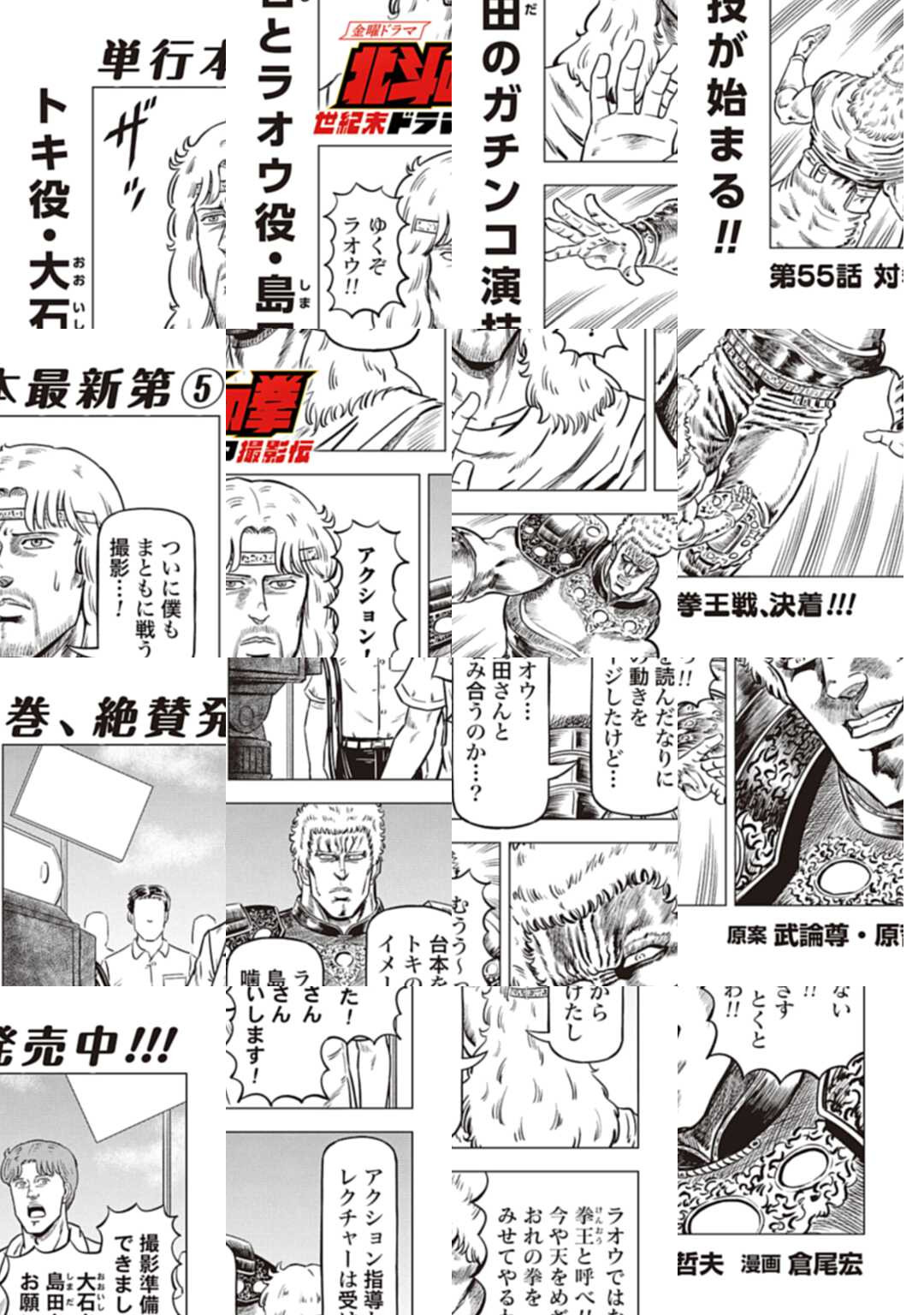 時は世紀末。 海は枯れ、地は裂けた世界。 弱きを傷つける悪に立ち向かう革ジャンの男。 敵を華麗に倒す姿に大きな叫び声が重なる。 「カーーーット!」 枯れた海も、裂けた地も大規模なドラマセット。 これはドラマ『北斗の拳』を日夜撮影する者たちの血と涙と汗の記録。