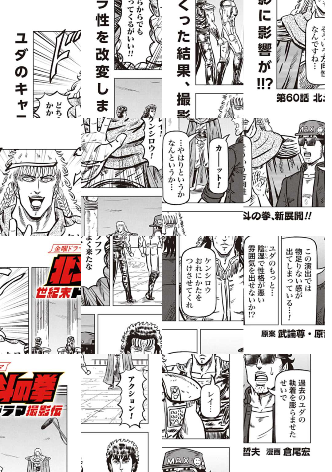 時は世紀末。 海は枯れ、地は裂けた世界。 弱きを傷つける悪に立ち向かう革ジャンの男。 敵を華麗に倒す姿に大きな叫び声が重なる。 「カーーーット!」 枯れた海も、裂けた地も大規模なドラマセット。 これはドラマ『北斗の拳』を日夜撮影する者たちの血と涙と汗の記録。