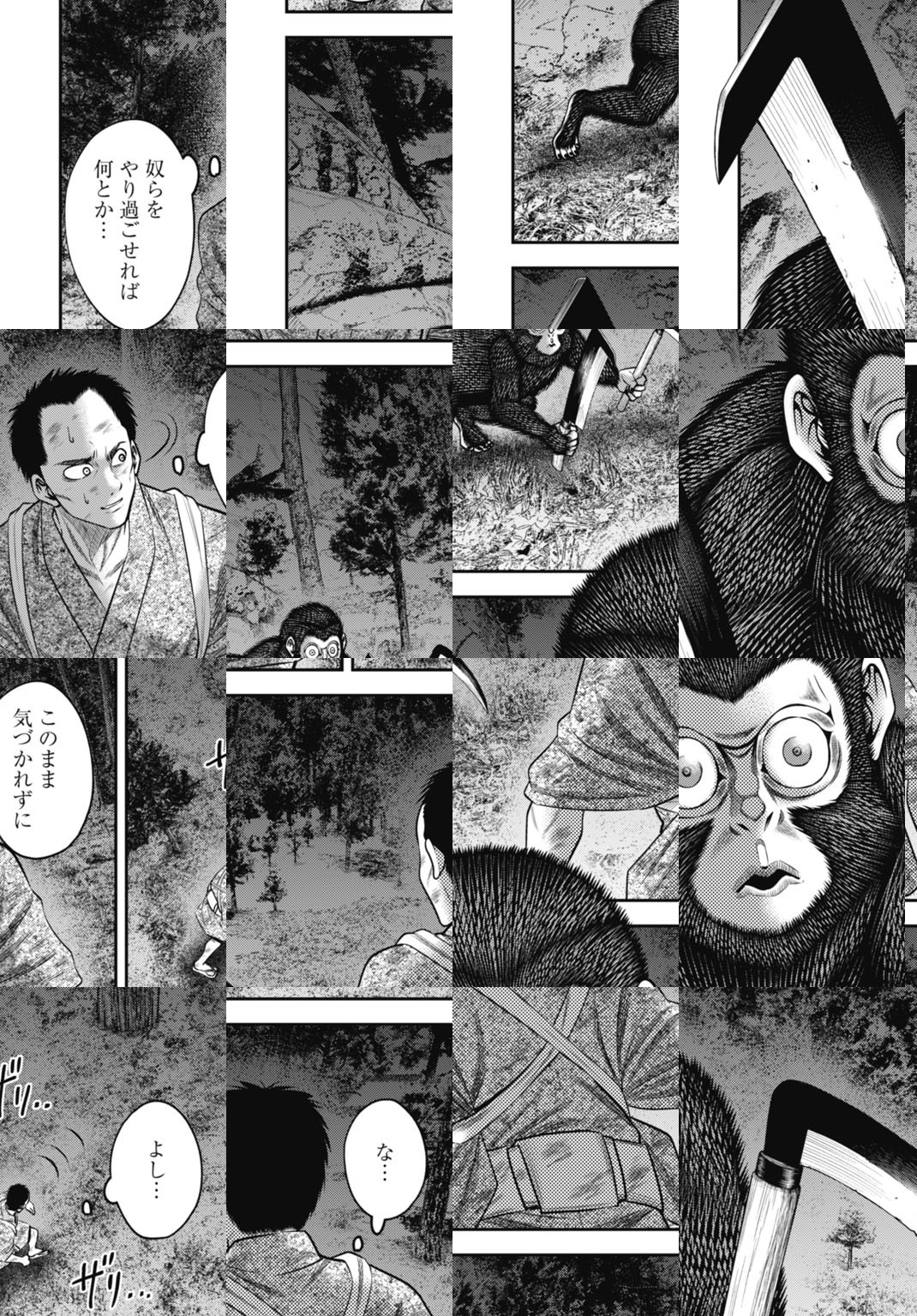 天明三年。世では飢饉による食糧難のなかでも、主人公の可畏が住む山村では野生の動物を狩ることで他よりも幾分良い生活ができていた。しかし、ある日山で迷ったという男が村に来る。一向に目を合わせようとしないその男を訝しむ可畏だが、家族とともにもてなす。そしてその夜、村の外れではさらなる招かれざる獣が入り込んでいた...。