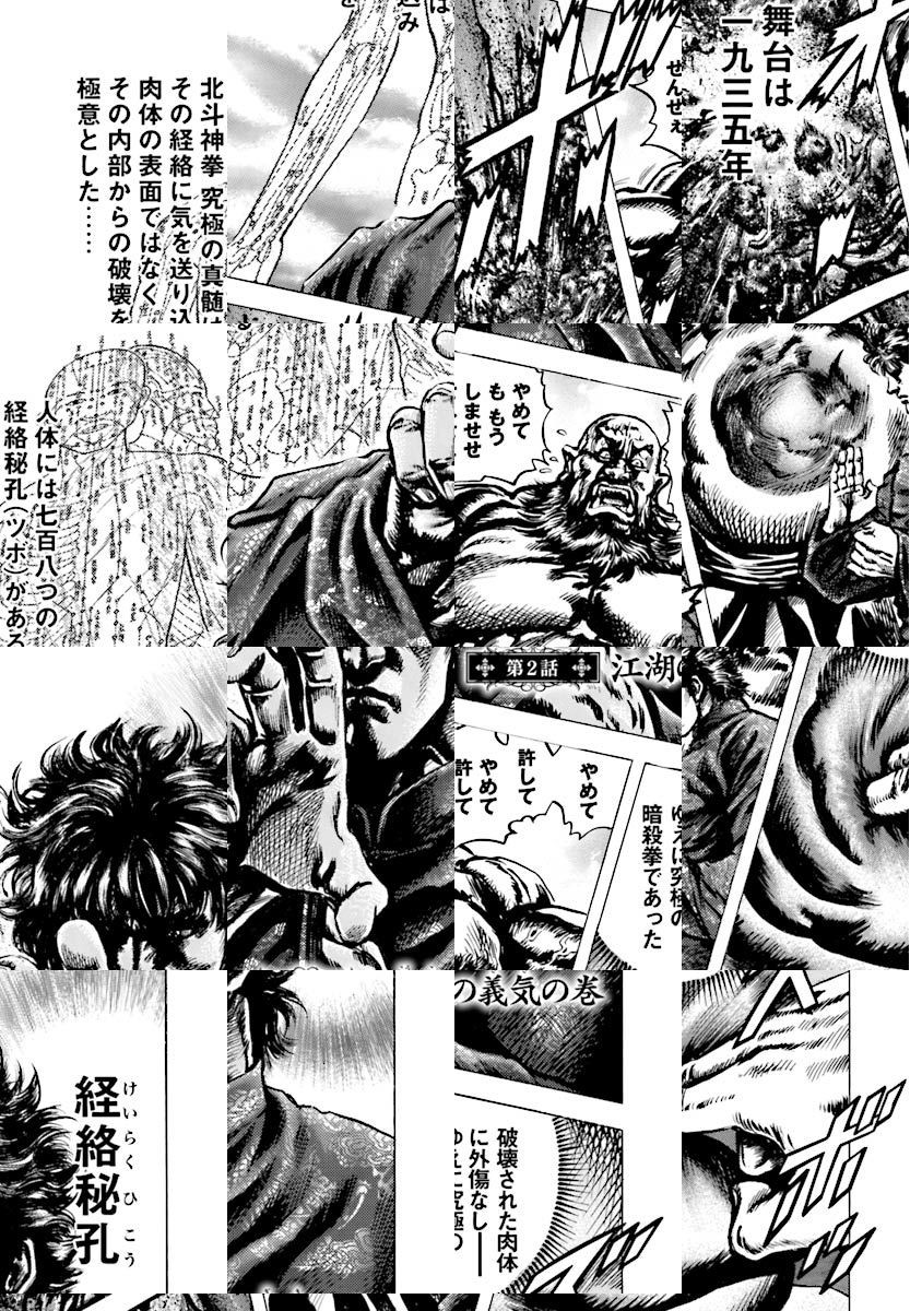 1932年、黒社会の巣窟と化した魔都・上海に “闇王”と呼ばれ、悪党たちを震撼させた一人の拳法家がいた! その男の名は霞拳志郎!! 究極の暗殺拳「北斗神拳」の伝承者にして、北斗1800年の歴史上、最も奔放苛烈と呼ばれ、何より義に厚い、蒼天のような漢の宿命の戦いが幕を開ける!