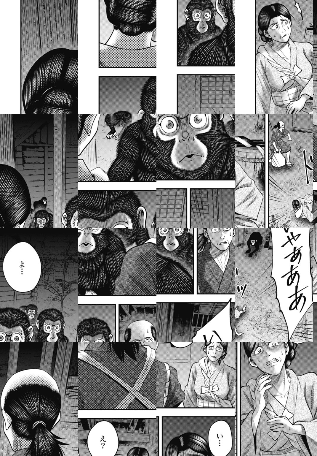 天明三年。世では飢饉による食糧難のなかでも、主人公の可畏が住む山村では野生の動物を狩ることで他よりも幾分良い生活ができていた。しかし、ある日山で迷ったという男が村に来る。一向に目を合わせようとしないその男を訝しむ可畏だが、家族とともにもてなす。そしてその夜、村の外れではさらなる招かれざる獣が入り込んでいた...。