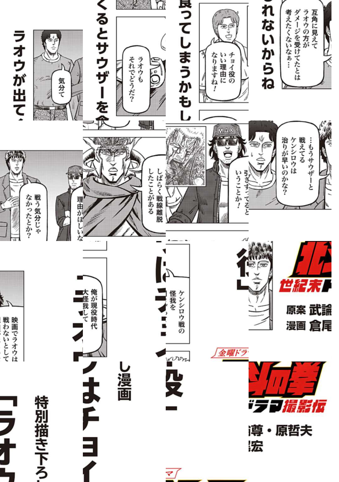 時は世紀末。 海は枯れ、地は裂けた世界。 弱きを傷つける悪に立ち向かう革ジャンの男。 敵を華麗に倒す姿に大きな叫び声が重なる。 「カーーーット!」 枯れた海も、裂けた地も大規模なドラマセット。 これはドラマ『北斗の拳』を日夜撮影する者たちの血と涙と汗の記録。