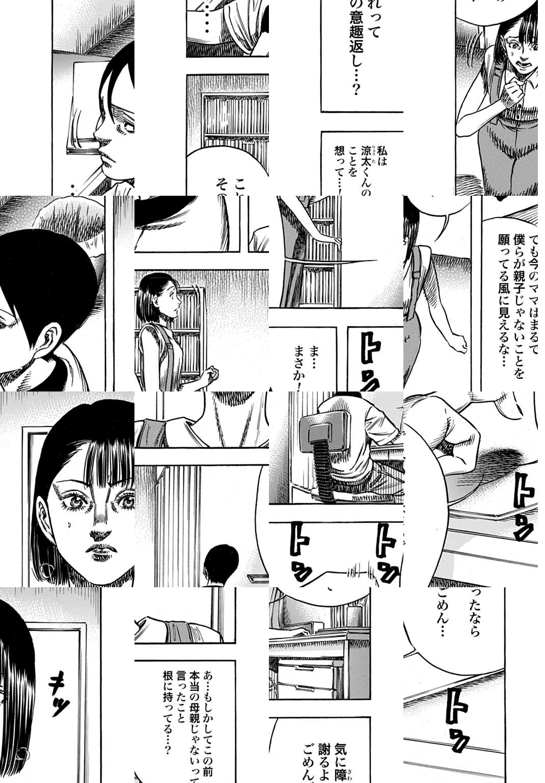 【単行本⑫巻の続きは第52話から!】中学生の三木涼太は、母ひとり子ひとりだが、その仲はむつまじくとても幸せに暮らしていた。だが、家族間の些細なトラブルやミスで怯えるのは母という、親の身分が低いかのような不思議な関係だった。一方、クラスメイトの笠井薫は過保護な親に辟易し、イジメを受ける自分の性格は母親が悪いと考えていた。そんなある日、いつもの薫へのイジメを助けたことがきっかけで、ふたりははじめて会話をするが…!? 究極の母性に取り憑かれた少年のサイコスリラー・サスペンス!