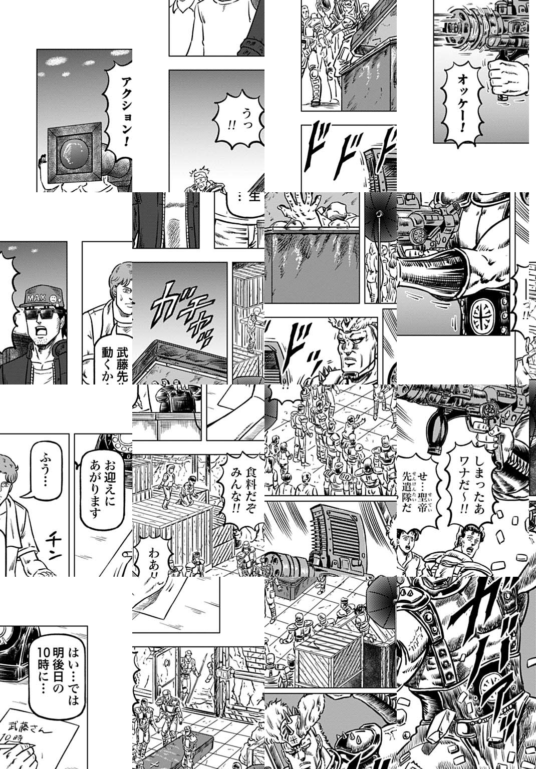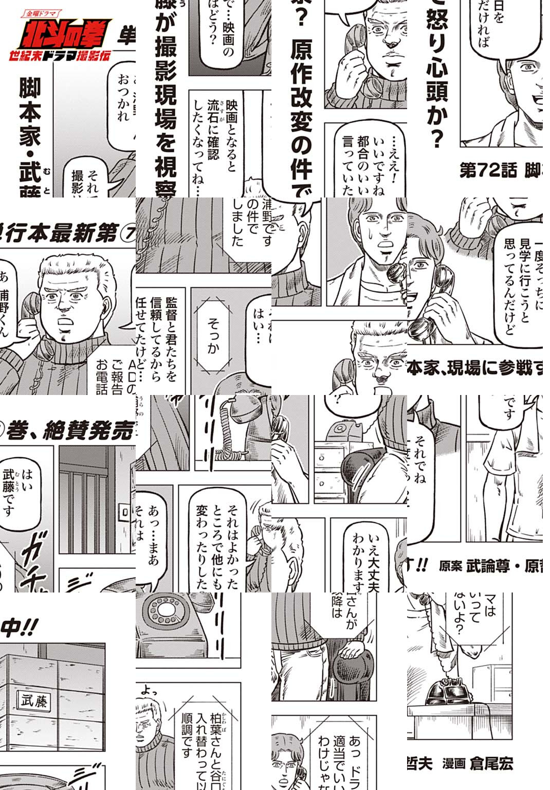 時は世紀末。 海は枯れ、地は裂けた世界。 弱きを傷つける悪に立ち向かう革ジャンの男。 敵を華麗に倒す姿に大きな叫び声が重なる。 「カーーーット!」 枯れた海も、裂けた地も大規模なドラマセット。 これはドラマ『北斗の拳』を日夜撮影する者たちの血と涙と汗の記録。