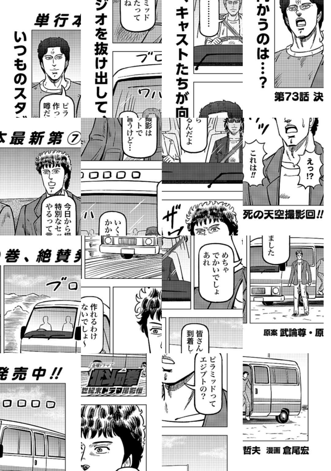 時は世紀末。 海は枯れ、地は裂けた世界。 弱きを傷つける悪に立ち向かう革ジャンの男。 敵を華麗に倒す姿に大きな叫び声が重なる。 「カーーーット!」 枯れた海も、裂けた地も大規模なドラマセット。 これはドラマ『北斗の拳』を日夜撮影する者たちの血と涙と汗の記録。