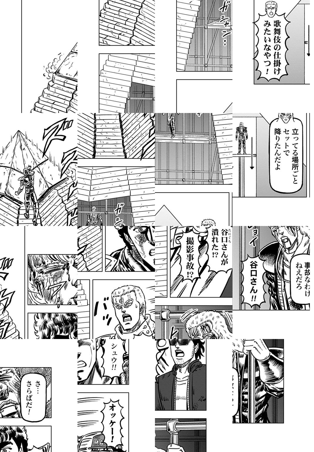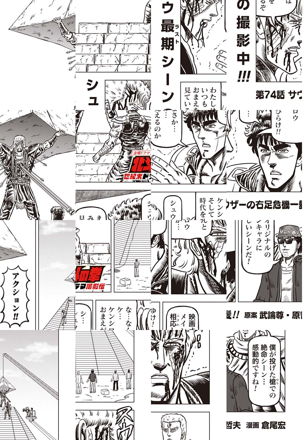 時は世紀末。 海は枯れ、地は裂けた世界。 弱きを傷つける悪に立ち向かう革ジャンの男。 敵を華麗に倒す姿に大きな叫び声が重なる。 「カーーーット!」 枯れた海も、裂けた地も大規模なドラマセット。 これはドラマ『北斗の拳』を日夜撮影する者たちの血と涙と汗の記録。