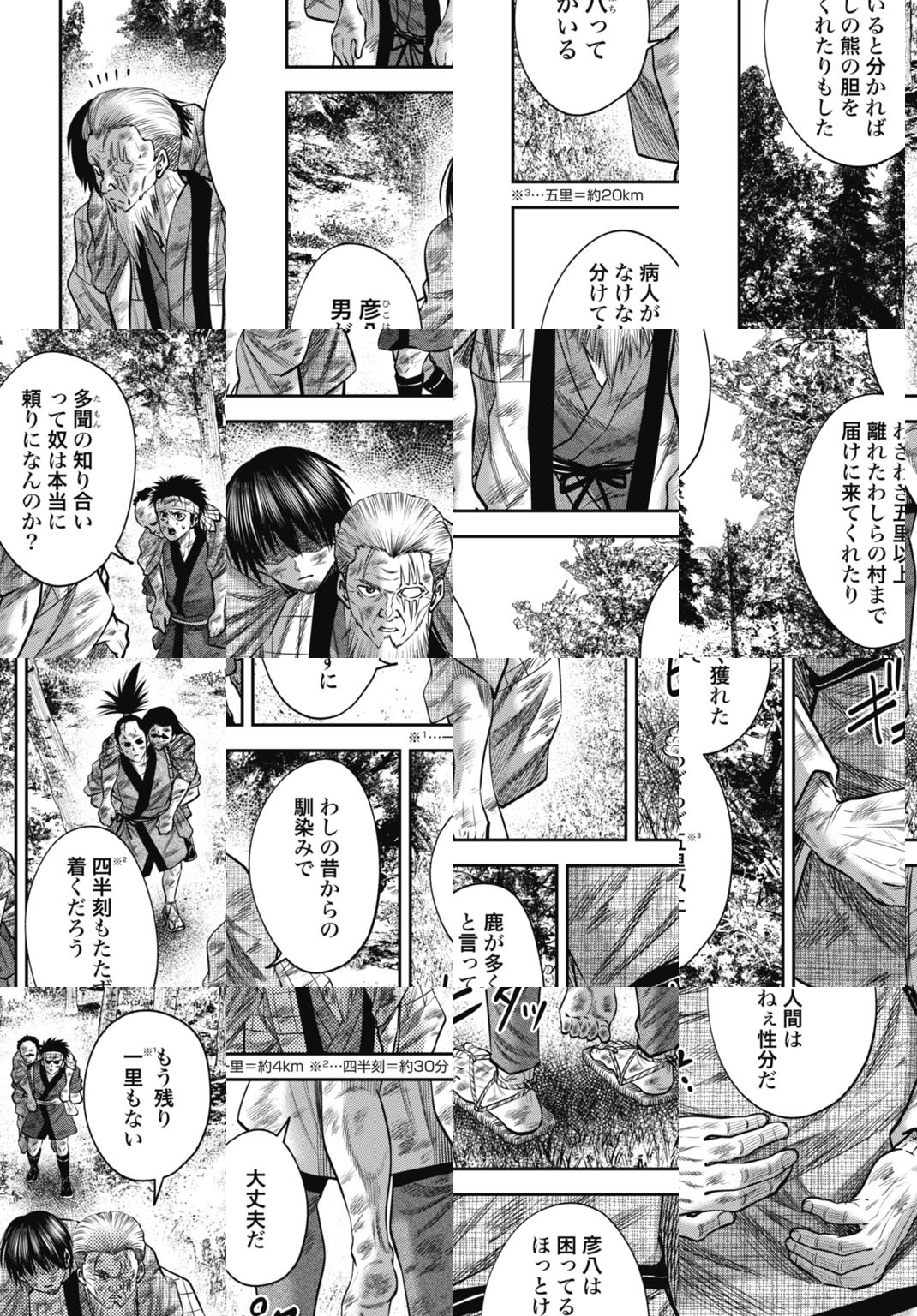 天明三年。世では飢饉による食糧難のなかでも、主人公の可畏が住む山村では野生の動物を狩ることで他よりも幾分良い生活ができていた。しかし、ある日山で迷ったという男が村に来る。一向に目を合わせようとしないその男を訝しむ可畏だが、家族とともにもてなす。そしてその夜、村の外れではさらなる招かれざる獣が入り込んでいた...。