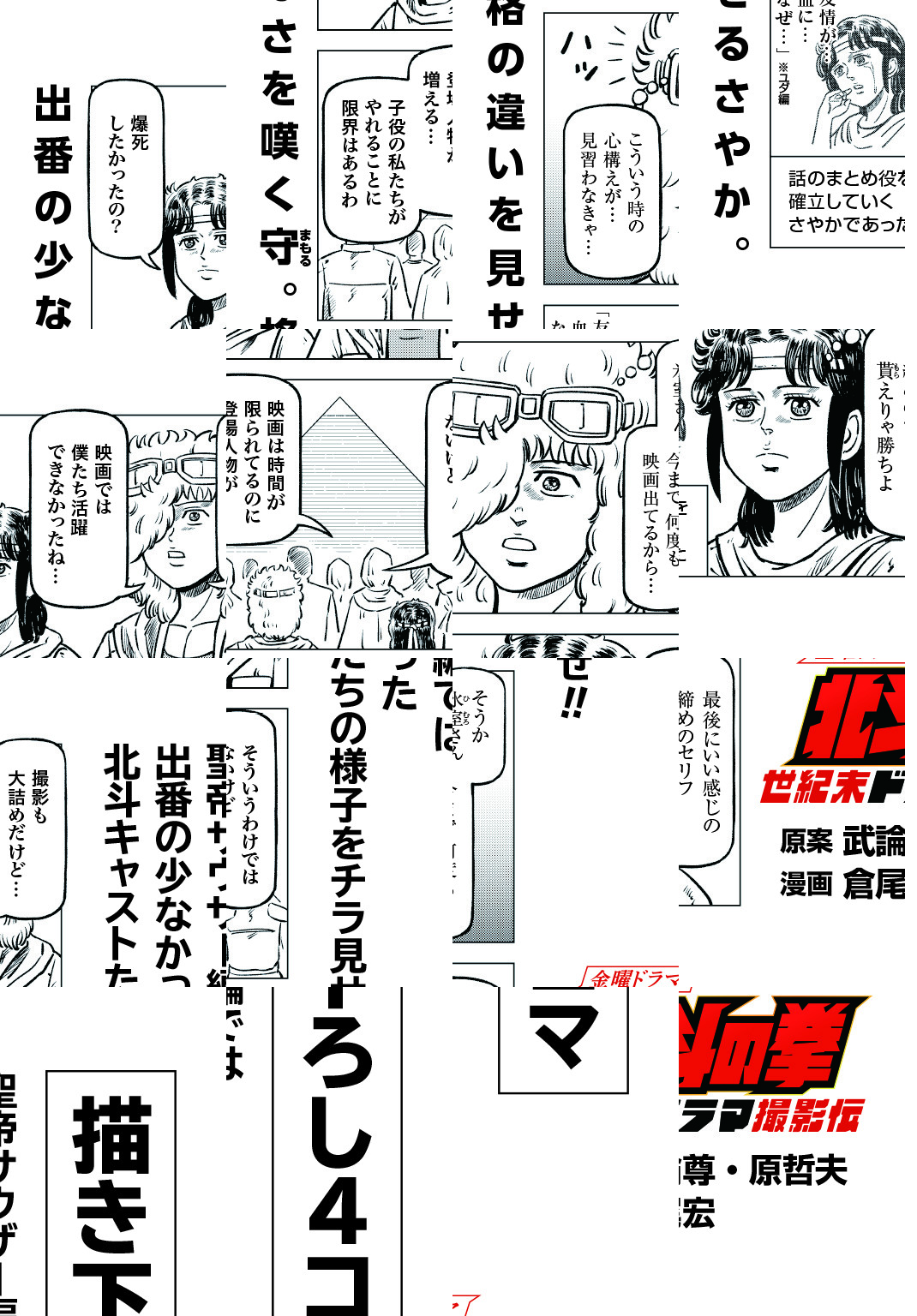 時は世紀末。 海は枯れ、地は裂けた世界。 弱きを傷つける悪に立ち向かう革ジャンの男。 敵を華麗に倒す姿に大きな叫び声が重なる。 「カーーーット!」 枯れた海も、裂けた地も大規模なドラマセット。 これはドラマ『北斗の拳』を日夜撮影する者たちの血と涙と汗の記録。
