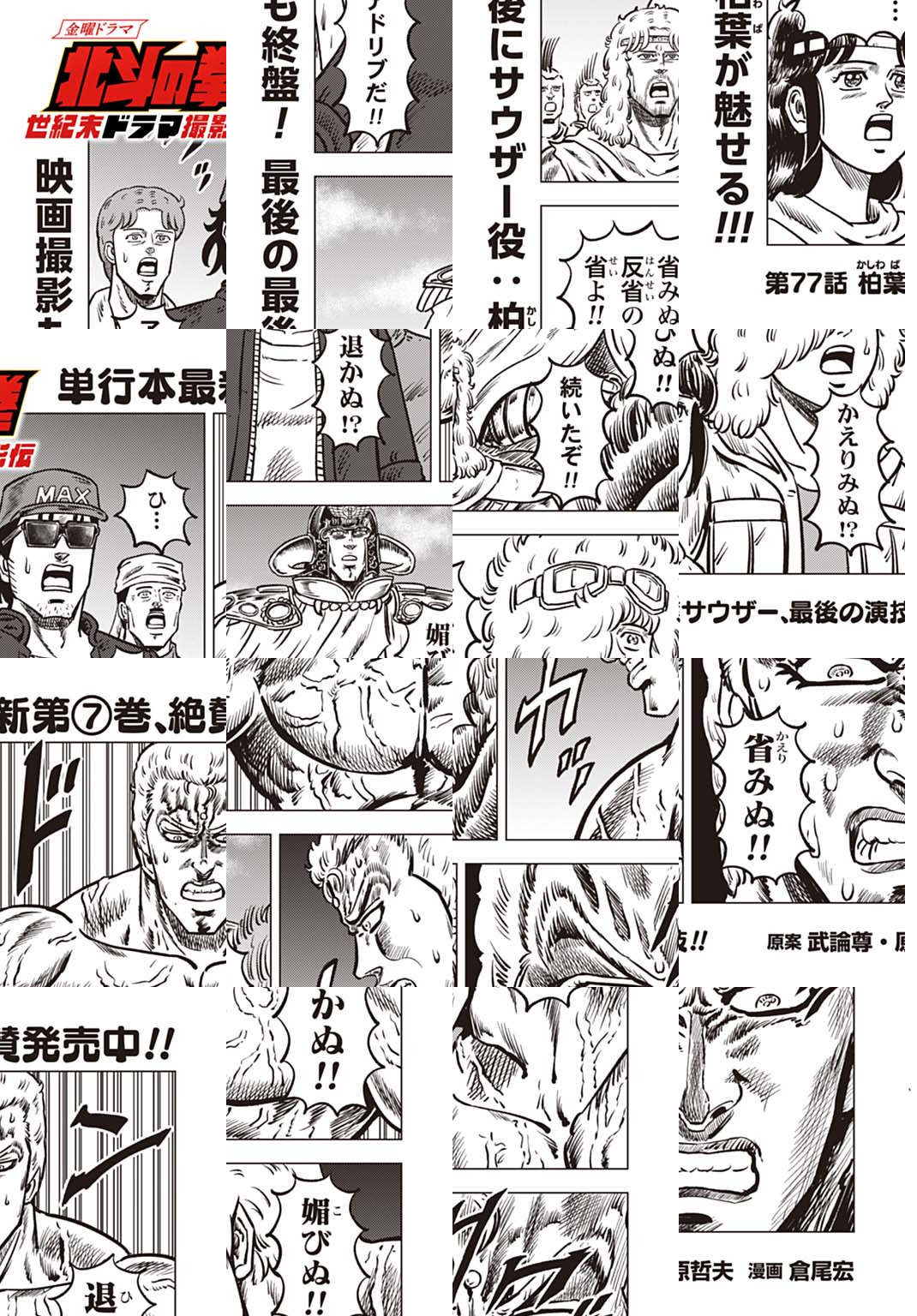 時は世紀末。 海は枯れ、地は裂けた世界。 弱きを傷つける悪に立ち向かう革ジャンの男。 敵を華麗に倒す姿に大きな叫び声が重なる。 「カーーーット!」 枯れた海も、裂けた地も大規模なドラマセット。 これはドラマ『北斗の拳』を日夜撮影する者たちの血と涙と汗の記録。
