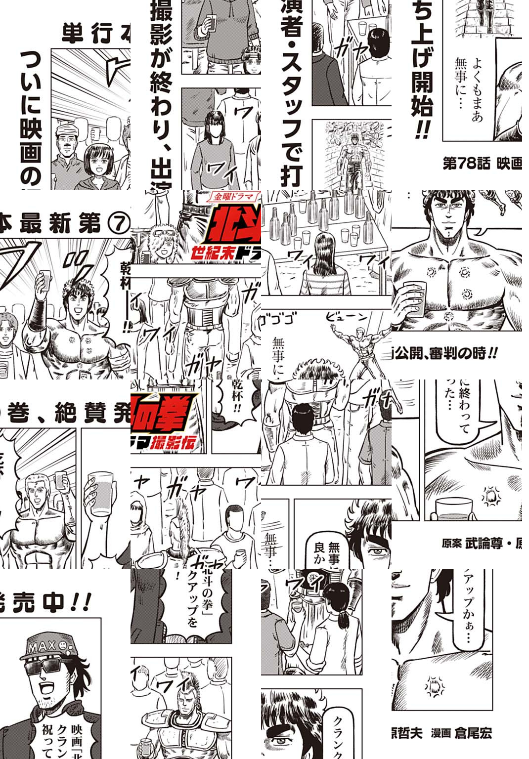時は世紀末。 海は枯れ、地は裂けた世界。 弱きを傷つける悪に立ち向かう革ジャンの男。 敵を華麗に倒す姿に大きな叫び声が重なる。 「カーーーット!」 枯れた海も、裂けた地も大規模なドラマセット。 これはドラマ『北斗の拳』を日夜撮影する者たちの血と涙と汗の記録。