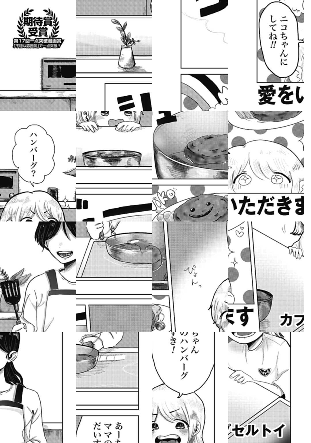 第17回一点突破漫画賞「期待賞」受賞作! 今日の晩ごはんは、あーちゃんの大好きなお母さん手作りのハンバーグ。お母さんの愛情が詰まったハンバーグを食べてみるが、なぜかいつもと味が違う!? そのワケとは──。