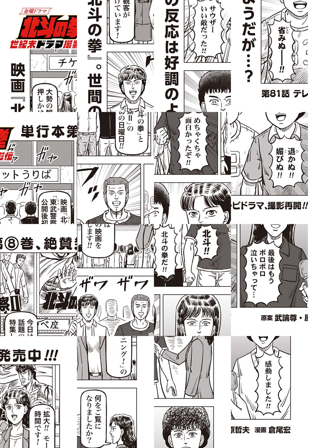 時は世紀末。 海は枯れ、地は裂けた世界。 弱きを傷つける悪に立ち向かう革ジャンの男。 敵を華麗に倒す姿に大きな叫び声が重なる。 「カーーーット!」 枯れた海も、裂けた地も大規模なドラマセット。 これはドラマ『北斗の拳』を日夜撮影する者たちの血と涙と汗の記録。