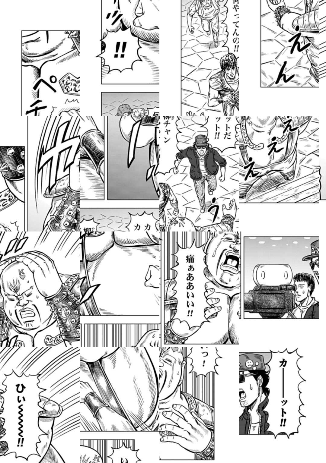 時は世紀末。 海は枯れ、地は裂けた世界。 弱きを傷つける悪に立ち向かう革ジャンの男。 敵を華麗に倒す姿に大きな叫び声が重なる。 「カーーーット!」 枯れた海も、裂けた地も大規模なドラマセット。 これはドラマ『北斗の拳』を日夜撮影する者たちの血と涙と汗の記録。