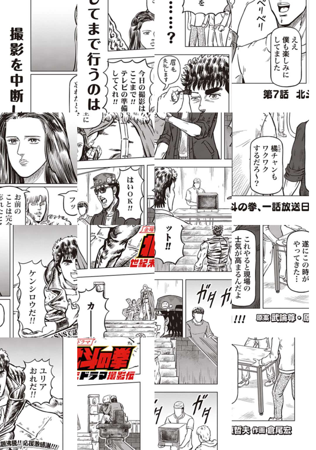 時は世紀末。 海は枯れ、地は裂けた世界。 弱きを傷つける悪に立ち向かう革ジャンの男。 敵を華麗に倒す姿に大きな叫び声が重なる。 「カーーーット!」 枯れた海も、裂けた地も大規模なドラマセット。 これはドラマ『北斗の拳』を日夜撮影する者たちの血と涙と汗の記録。