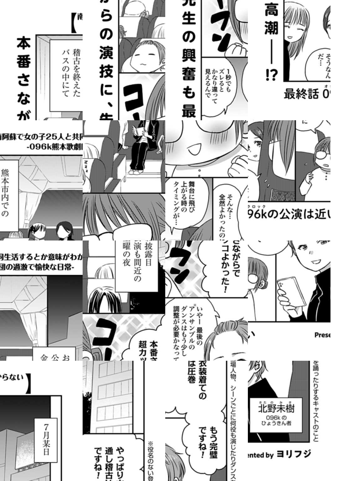 泣かず飛ばずの女性漫画家ヨリフジの元に届いた一本の依頼電話。それは南阿蘇で共同生活をする熊本の096k歌劇団の女の子達の生活を漫画で紹介するものだった。可愛い女の子達との生活と聞いて二つ返事で参加するのだが、その実態とは…。女の子25人の喜怒哀楽は南阿蘇にあった!読めば応援したくなる、歌劇団の日常!