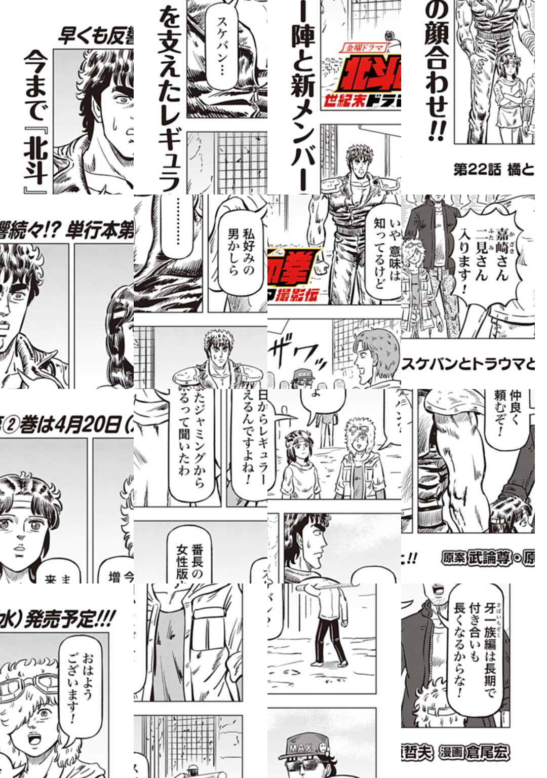 時は世紀末。 海は枯れ、地は裂けた世界。 弱きを傷つける悪に立ち向かう革ジャンの男。 敵を華麗に倒す姿に大きな叫び声が重なる。 「カーーーット!」 枯れた海も、裂けた地も大規模なドラマセット。 これはドラマ『北斗の拳』を日夜撮影する者たちの血と涙と汗の記録。