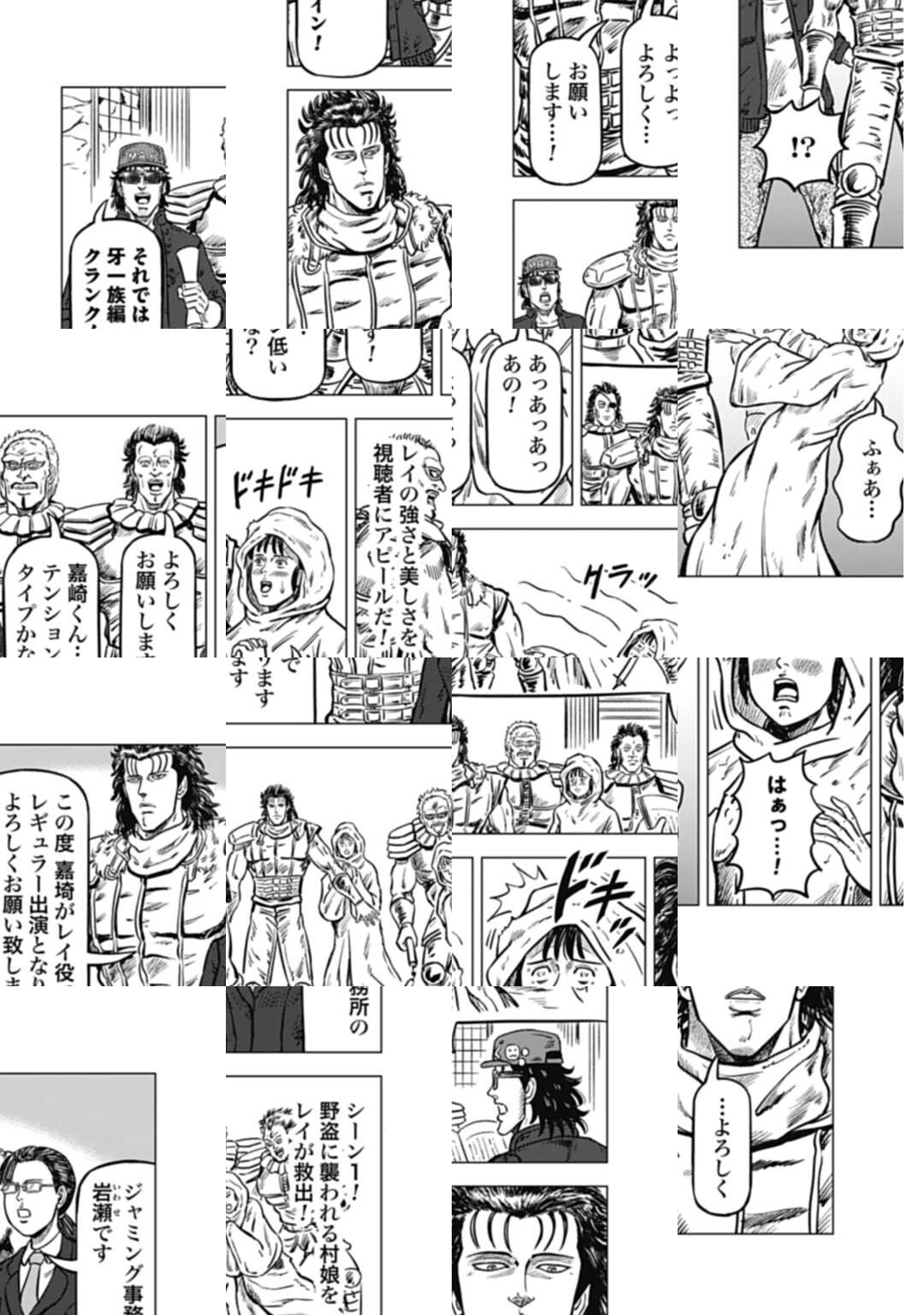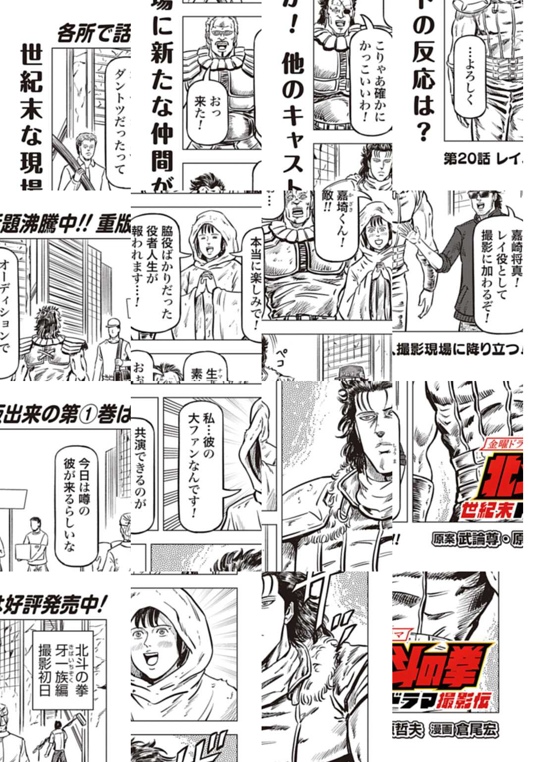 時は世紀末。 海は枯れ、地は裂けた世界。 弱きを傷つける悪に立ち向かう革ジャンの男。 敵を華麗に倒す姿に大きな叫び声が重なる。 「カーーーット!」 枯れた海も、裂けた地も大規模なドラマセット。 これはドラマ『北斗の拳』を日夜撮影する者たちの血と涙と汗の記録。