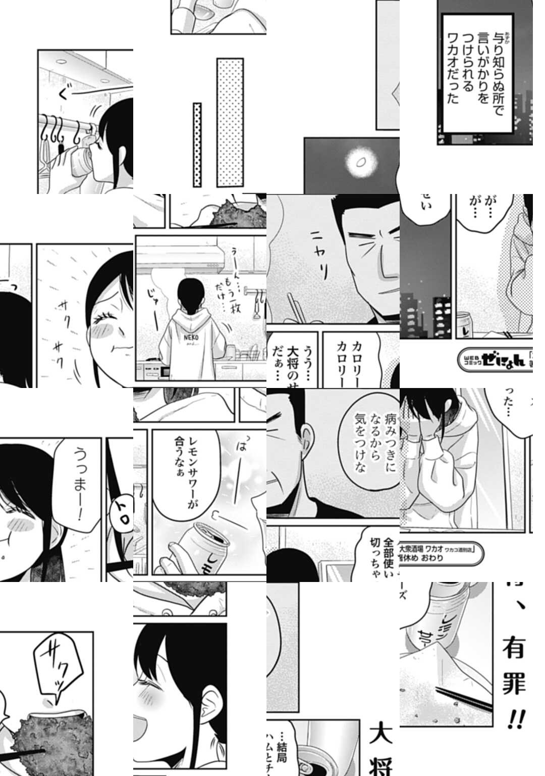 どの駅からも徒歩15分。猫の額ほどの大衆酒場「若尾」。 ここには料理を通して客と対話する強面店主・ワカオがいる。 うまい酒と料理で呑兵衛の舌を肥やす店主サイドストーリー。