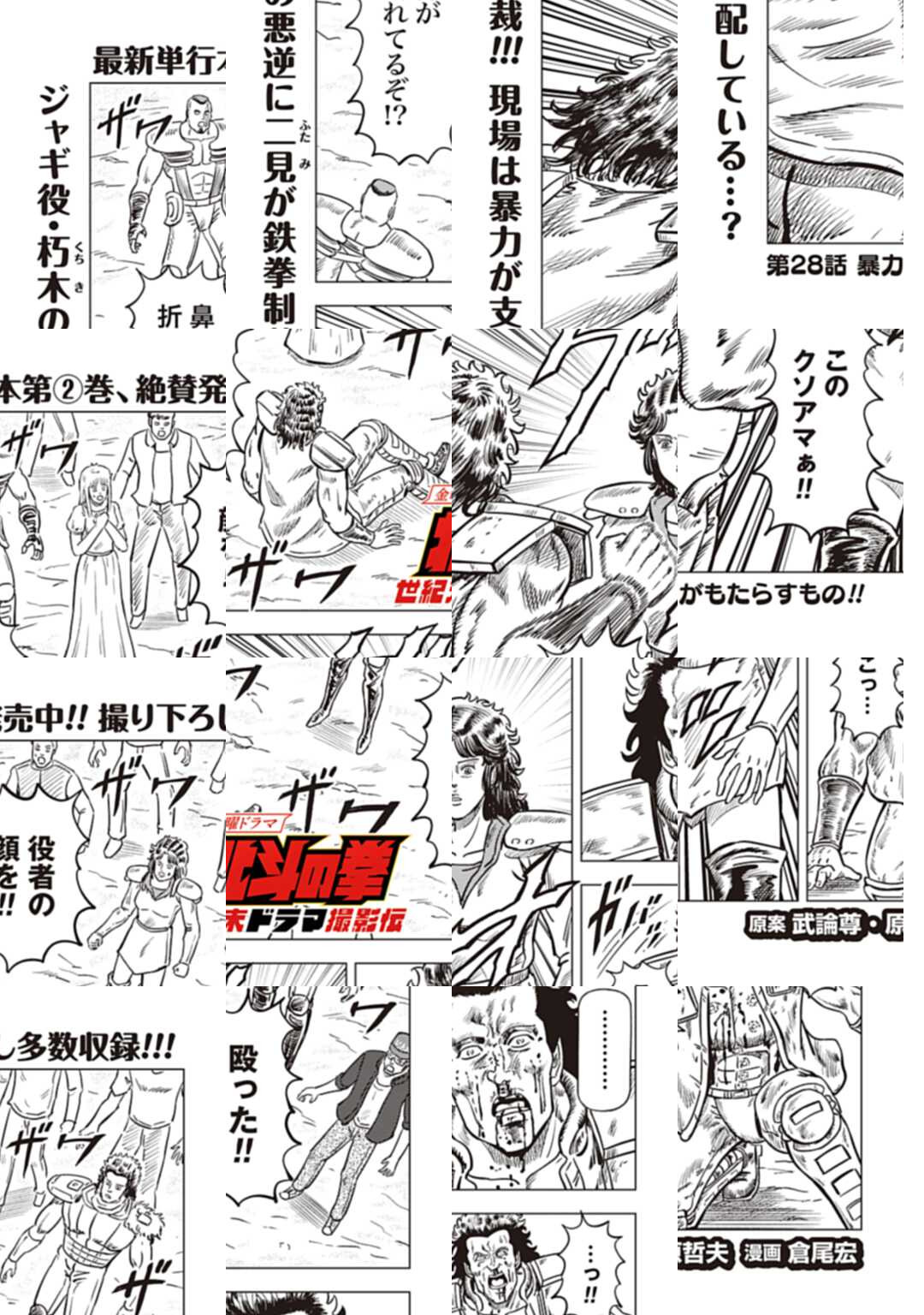 時は世紀末。 海は枯れ、地は裂けた世界。 弱きを傷つける悪に立ち向かう革ジャンの男。 敵を華麗に倒す姿に大きな叫び声が重なる。 「カーーーット!」 枯れた海も、裂けた地も大規模なドラマセット。 これはドラマ『北斗の拳』を日夜撮影する者たちの血と涙と汗の記録。